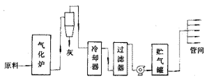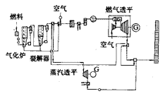 各种利用方式的总体效率 假设生物质能源利用过程中CO2的净排放为零,而运输和预处理过程由于使用矿物燃料而排放CO2。所以,不同的利用方式,效率不同,预处理过程不同,得到同样可用能而对减少CO2排放的作用就不同。 1 直接燃烧 我国是农业大国,在农村能源消费结构中,生物质能约占生活用能的70%,占整个用能的50%,但生物质的利用仍以直接燃烧的柴灶为主,这种方式效率很低,只有15%左右。生物质工业锅炉的设计效率虽然也能达到矿物燃料的水平,但实际运行中的效率却并不理想。所以,应尽量推广更先进的生物质利用技术。 2 气化供气、燃烧 随着人民生活水平的提高,许多城镇和农村开始使用煤气。而利用石油裂解气或优质煤为气化原料,生产成本相当高。生物质的特点,使其特别适于作气化的原料,利用气化炉,将生物质通过热化学转换变为可燃气体,作为生活煤气或锅炉燃料与煤混烧,可节约大量优质矿物燃料。图2为生物质气化集中供气示意图。 图2 生物质气化集中供气示意图 下吸式气化炉已成功地用于农村供气系统,利用当地的农作物废弃物,如玉米秆、麦杆、稻壳等为原料,气化后的燃气作为当地居民生活用气。气体热值5.2MJ/m3,气化效率70%以上,煤气炉灶的燃烧效率为50%,系统效率约35%[2]。 中科院广州能源所研制的以O2为气化介质,采用CFBG技术的中热值煤气系统,产生的煤气热值在10—12MJ/m3之间,气化效率在70%以上[3],总体效率在40%左右。 循环流化床木粉气化炉,以燃气做锅炉燃料,气化热效率约95%,燃气在锅炉中的燃烧效率在95%以上,燃烧总效率为90%左右。 3 气化发电(中小型) 中小型气化发电系统包括气化、除尘、除焦、发电几部分,如图3所示。按国内目前气化发电技术水平,小型气化发电系统(2.5kW)的有效热效率为11.6%;60—200kW稻壳气化发电系统,系统效率为12%;中等规模气化发电系统(1MW),利用循环流化床技术,系统效率可达17%左右[4]。虽然气化发电的系统效率较低,但产生的是高品位的电能,可用性高。 图3 1MW生物质气化发电系统示意图 4 生物质IGCC技术 IGCC即气化联合循环发电系统,适合于大规模处理农业或森林生物质,流程如图4所示,该系统具有处理容量大,自动化程度高,系统效率高等优点,较适合工业化生产。常压的IGCC系统,系统效率可达35—45%。 图4 生物质IGCC示意图