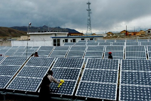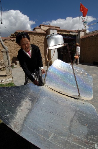 8月12日,西藏那曲县古露镇牧民正在维护太阳能光伏电站。 西藏十分重视太阳能、风能、地热等可再生能源的开发和利用,制定了合理的发展目标和符合市场规律的产业政策,逐步实现西藏可再生能源的产业化。目前,全区推广太阳能热水器20万平方米,太阳灶15万余台,太阳能采暖房、温室、牛羊暖圈等近30万平方米。在那曲、日喀则、山南、阿里等地区先后引进了各种类型的风力发电机,建成了一批风力发电示范乡村,为边远山区群众照明和收听收看广播电视供电。全区还建成3座地热电站,总装机容量近3万千瓦,其中著名的羊八井地热电站装机容量达到2.4万千瓦。 新华社记者 索朗罗布 摄 8月13日,西藏堆龙德庆县桑木村农民扎桑正在利用太阳灶烧水。新华社记者 宋振平 摄 8月13日,西藏当雄县羊八井镇牧民洛丹正在利用地热水煮鸡蛋。新华社记者 刘海峰 摄