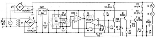 该微型永磁式水轮发电机为单相 220V 交流输出,无法用励磁调控,只能手动调节进水阀 ( 负载为一定时 ) 或者调节负载(水压、流量为一定时 ) ,负载对输出电压的影响极大,当水压为一定值时,负载从 1OOW 变化至 260W ,输出电压会从370V降至 125V 。 稳压思路是当水压、水量为一定值时,在回路中并入一个由PWM控制的可变负载,当实际的负载发生变动时,可变负载随之改变,保持总负载不变。因此发电机的负载为:实际负载 + 可变负载=总负载,只要总负载不变,回路中的电压就能稳定。 采用 555 时基和运放组成的 PWM 基本控制电路见附图。 1 .由小型电源变压器、桥式整流 l 号、滤波电容 C1 、 C2 和 78L 05 组成的稳压电源电路,提供5V稳压电源。 2 .由 NE555 时基、 R1 、 R2 、 C4 和 1 / 2 运放 LM358-A 组成 PWM 控制电路,在LM358一 A 的同相输入端输入大约 1 . 3V-3 . 6V 的电压时.就能控制 LM 358 输出的脉冲宽度。 3 .由桥式整流 2 号、 C3 、 RL 和 Q3组成的直流供电回路,作为可变负载的可控能耗电源,并与发电机的电源并联。 4 .由另外 1 , 2 的 LM358-B 组成放大电路, RW1 可调节基准的起始电压。 R7 、 RW2 和R8组成取样电路。取样电压输入到 LM358-B 的同相端,电源电压的微小变化经 LM 358 一 B 放大后直接反馈给LM358-A的同相输入控制端。 5 . Ql 、 Q2 、 R9 ~ R13 和 DW 组成反相、偏置和驱动电路,用 LM 358-A 输出的脉宽控制Q3的截止时间,也就是控制直流负载 RL 上消耗的电能量。当稳压器刚插入发电机回路时, Q2 是截止的, Q3 的 Vg=18V ,Q3全导通,负载全接入,这样可避免开机时的高压损坏其他的电器。 调压过程:若实际负载↓→电源电压↑→ LM358-B 的同相输入端电压↑→ LM358-B 输出电压↑→LM358-A的同相输入端电压↑→ LM358-A 输出低电平脉宽变窄→ Q1 导通时间变短→ Q2 导通时间变短→ Q3导通时间变长→ RL上消耗的电能↑→电源电压↓。当实际负载增加时.恰好与上述的分析相反。调节 RW2 可调节稳压值。 注意事项: 1) 动态负载 RL 、 Q3 和整流桥 2 号应和发电机的额定功率匹配.动态负载RL的功率应略大于发电机的额定功率。可以使用两个灯泡串联作负载,考虑到 RL 上的直流电压为 280V ~300V.应将两个灯泡串联使用。也可以用大功率电阻、电炉丝或电热器具 ( 可同时加热水,一举两得 ) 。RL一定要接牢靠,不可开路。否则空载的高电压将烧毁控制器。 Q3 要加良好的散热片。 调试时应先在标准 220V 电源上预调,调到使 RI, 接近满负荷后.再接入发电机回路中去调整。以免稳压器损坏。 该调压器也可用在小型风力永磁交流发电机的稳压上。 该调压器使用一年多来,性能稳定、稳压精确。该稳压器是耗能型的,但还比较实用。