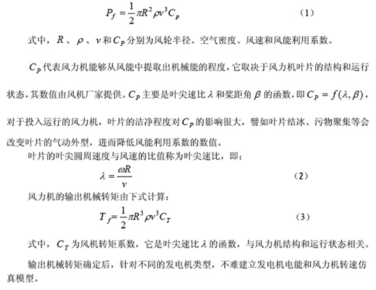 摘 要:本文简单介绍了仿真技术在风力发电系统的应用情况,重点分析了风速、风电机组以及风电场的建模方法和模型结构,最后结合我国风电系统发展实际,说明了应用风电场仿真机 关键词:风力发电,风电场,仿真,模型,建模方法,仿真机 0 引言 出于保护环境的考虑以及全球面临的能源短缺现状,风力发电在世界范围内得到了快速发展。随着风电行业的技术进步,风力发电成本逐步降低,在经济性上已经能够与核能发电、水力发电展开竞争。当前,我国面临电力短缺局面,在煤电占主导地位的我国电力行业,因环境承载力限制以及各种因素导致的煤炭短缺局面,煤电发展受到制约。而我国风能资源丰富,风能利用得到了政府的政策支持,风力发电产业面临前所未有的发展机遇。近几年来,我国风电产业发展势头良好,多个大型风电场处于建设或规划阶段。 我国风电产业发展尚存在诸多制约因素。就技术层面而言,大型风力发电设备生产技术不过关,大多从国外采购或引进技术生产,研发基础薄弱;对风电机组或风电场的运行特性的研究不足,设备运行管理水平还有待提高。将仿真技术广泛应用于风力发电设备的设计、试验测试、运行分析等各个方面,将有助于加快我国风力发电技术的发展步伐,是缩小与发达国家技术差距的捷径。 1 仿真技术在风力发电系统的应用概况 随着风力发电在世界的广泛应用,为降低风力发电成本、提高风能利用效率,风力发电设备单机容量越来越大,同时为风机的设计制造、控制系统设计和运行等各个方面提出了更多的研究课题。传统的实物测试研究方法已不能满足发展需要,仿真技术因不受气象条件的限制,且投入低等优点,逐渐在风力发电机组的研究和测试领域得到了越来越广泛的应用。 仿真即选取一个物理的或抽象的系统的某些行为特征,用数学模型来表示它们的过程,若用计算机求解数学模型,称为计算机仿真。通俗说来,仿真是指使用仪器设备、模型、多媒体技术,以及利用场地、环境的布置,模仿出真实系统的工作特性和环境,进而用于科学研究、工业设计、预测预报或教学训练等目的的一项综合技术。仿真若仅限于设计研究目的,则勿需仿真对象系统的环境,亦无实时仿真的必要,借助一台主流微型计算机和商业仿真软件即可开展仿真研究工作。 1980 年代初,国外学者开始将仿真方法用于风电机组的的性能研究[1],其后,仿真技术在风力发电系统的应用范围逐渐拓展。目前,从风电关键设备和控制系统的设计、制造、性能测试与研究,风电机组或风电场运行分析等各个方面均有仿真技术的应用。仿真技术的应用在很大程度上替代了传统的利用实际设备开展的设计检验等手段。主要的研究方向整理如下。 1)风能特性仿真,反映风能的位置分布和时间变化特性。风特性仿真结果将用于风力发电机组或风电场的仿真分析中,是风电仿真研究的基础。 国内利用仿真技术开展风电系统研究的起步较晚,公开发表的仿真研究成果不多,尚未形成气候。近几年情况在发生变化,更多的研究人员已经将仿真技术引入风电系统的研究工作中,相信近期内将会有更多的高水平仿真研究成果发表,并能有力促进风电产业的技术进步。 2 风能及风电机组仿真模型 与常规发电机组(如火电、水电、核电)相比,风力发电机组的突出特点是输入能量不受控制,这一特点导致风力发电机组在构成上与常规发电机组有着很大的不同且呈现出多样化特点。我们知道,常规发电机组的机械能-电能转换装置普遍采用同步发电机,而并网型风电机组采用的发电机则形式多样,如恒速恒频同步/异步发电机、交/直/交发电机、磁场调制发电机、交流励磁双馈发电机等。因采用的发电机类型不同,相应的控制系统区别很大,电能参数随风能变化的特性也有很大的不同。 仿真研究人员需要根据风力发电机组的特点开发针对性的仿真模型软件。限于篇幅,本文主要介绍共性部分的仿真。 2.1 典型风力发电机组的仿真模型总体结构 一种典型的变速风力发电机组见图2,它采用双馈异步发电机(DFIG)。发电机的定子线圈直接与电网相连,转子线圈则通过滑环和电力电子逆变器与电网连接。因此,当风速变化引起发电机转速变化时,通过控制转子电流的频率,可保持定子频率的恒定,进而实现风力发电机组的变速运行。在高风速条件下,通过调整叶片桨距限制风力机的输出功率。 上述两种风力发电机组的仿真模型的总体结构分别表示在图3 和图4 中[3],变速风力机的控制系统要比恒速系统复杂得多,其仿真模型相应增加了桨距角、转速、端电压等控制器子模型和变频器的仿真模型。[NextPage] 2.2 风能特性模型 描述风能特性的参数主要有风速、风向和风密度。风的密度主要取决于风机所处的地理位置,气候变化也会产生一定影响,对于特定风机而言,风密度可以直接取自测量数据,并可以忽略密度的变化;针对研究型的仿真应用,风向的变动可不予考虑,即假定风力机一直跟踪风向的变化。因此,我们主要关注风速的变化特性。 风因大气环流形成,风速是一个典型的随机变量。若不考虑风的方向性,风速是其空间坐标位置和时间的函数,即v=f(x,y,z,t)。我们将描述某一区域风速的空域、时域分布变化特性的模型又称为风场模型(Wind Field Model)。严格说来,各空间位置上的风速因风的随机性、风场地