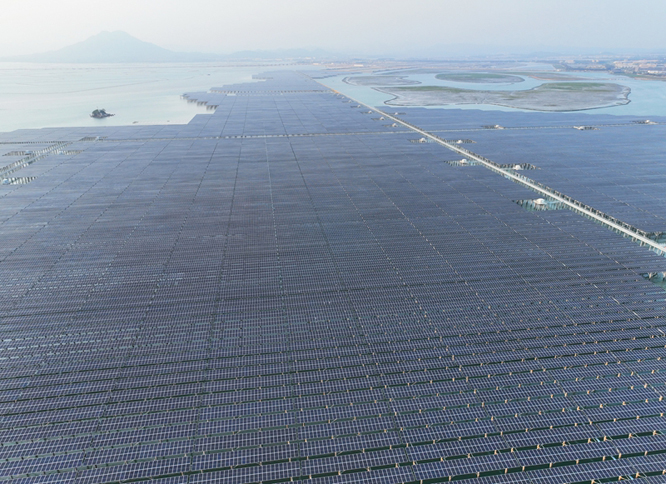 4月29日拍摄的三峡集团东山杏陈180兆瓦海上光伏场区一角(无人机照片)。 当日,在福建省漳州市东山县海域,我国首个建设在高风速海域的海上光伏电站项目——三峡集团东山杏陈180兆瓦海上光伏电站项目实现全容量并网。 该项目总装机容量180兆瓦,配套建设一座110千伏靖海陆上升压站和18兆瓦/36兆瓦时的储能系统。