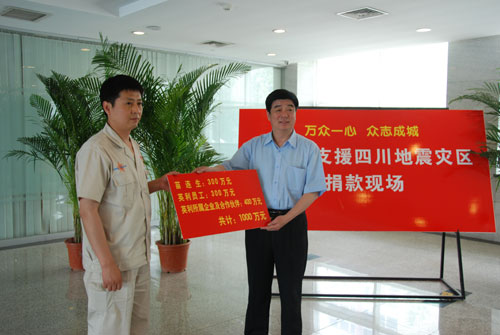 北京时间5月12日四川发生地震后,英利企业及英利所有员工在第一时间向灾区捐款107.51265万元及200支太阳能手电筒。随着抗震救灾工作的深入推进,5月26日英利再次向全体员工发出捐款的倡议,并取消原定于6月8日举办的上市一周年的答谢宴请活动,将预算费用全部捐赠给灾区。 英利董事长苗连生先生首先个人带头捐款300万元,在公司领导的带动下,公司高管及全体员工共捐款300万元。与英利合作的德国RENA公司、Roth&Rau AG公司、美国GT公司等十多家来自国外的设备供应商和合作伙伴也纷纷参与到捐款救灾的行动中来,会同英利旗下的海内外所属企业共捐款400万元。最后共筹集善款1000万元,加上第一次捐款107.51265万元,共捐款11075126元。 困难再大,压不倒我们中国人,此时此刻,英利人与全国人民在一起,与灾区人民心手相连、共赴时艰!