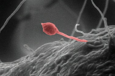斯特罗贝尔寻找粉红粘帚霉 粉红粘帚霉的显微图片 寄生粉红粘帚霉的果木树 工巧匠 最近,美国科学家在热带雨林中发现了一种粉红色的霉菌。这种霉菌有一种奇特的功能,可以让植物枝叶发酵,转化为燃烧值特别高的柴油气。这项发现为植物能源的利用开辟了新途径,是科学家在寻找可再生能源过程中的一项重大发现。 在目前能源逐渐紧缺的形势下,寻找可再生能源是各国科学家正在探索的事情,其中植物能源大受欢迎。因为植物可以再生,利用植物的枝叶生产能源还不影响生态环境。在200多年前,人们就发现植物发酵可以产生可燃性气体,这种气体的主要成分是甲烷,俗称“沼气”。 然而,沼气的密度小、燃烧值低,因此不是很理想的燃料。于是,科学家希望能够从植物废料中提取到更好的燃料。美国科学家加里·斯特罗贝尔就找到了这样一种原料,他在阿根廷巴塔哥尼亚高原的热带雨林中发现了粉红粘帚霉,这种霉菌可以把植物的废料转化为燃烧值比沼气高得多的柴油气。 斯特罗贝尔在心叶船形果木树的树干上发现了寄生的粉红粘帚霉。他起初对粉红粘帚霉的生存特性特别好奇,因为这种长在植物枝干上的霉会产生气体,这些气体可以消灭附近的其他真菌,让它独享植物枝干的“美食”。斯特罗贝尔希望弄清楚这些气体为何可以作为粉红粘帚霉的武器,结果发现这些气体不过是高浓度的碳氢化合物,可让其他真菌窒息而死。 斯特罗贝尔等人在实验室内检验粉红粘帚霉的性能,用以燕麦为基础的果冻和纤维素培养它们。研究人员利用抽风机把粉红粘帚霉排出的气体抽走,并将它们收集起来。他对粉红粘帚霉发酵植物原料释放的气体进行分析,发现其中富含8种柴油中的碳氢化合物,如燃烧值很高的辛烷。 与现在世界各地的植物燃料工厂生产的生物乙醇相比,粉红粘帚霉发酵产生的这种气体燃烧效果更好。这项发现让斯特罗贝尔十分惊喜,他说:“地球上还没有其他已知生物能让植物发酵出柴油气。这种气体混合物可以驱动发动机,直接作为机械的燃料。” 更加令人振奋的是,粉红粘帚霉可以生长在纤维素上。目前,植物能源科学家要攻克的难题就是怎样利用植物的纤维素,纤维素中含有大量的碳氢化合物,但是用普通的化学方法和生物方法都特别难分解。斯特罗贝尔说:“纤维素是地球上最丰富的有机化合物,但大多数给浪费掉了。” 通过粉红粘帚霉对纤维素进行发酵,可以产生大量现成的柴油气。但还需要做更多的实验来证实此想法的可行性。研究人员将做更大规模的测试,进行发酵后让此真菌产生足够多的柴油气来驱动一台小发动机。如果他们能做到这一点,利用这种方法来大规模生产柴油气就变得可行了。 植物燃料曾被宣传是代替石油的好选择,而且植物生长过程中可以吸收植物燃料产生的二氧化碳,让大气中二氧化碳浓度不会失衡。然而,现在不少人反对植物燃料,是因为许多工厂用粮食来生产燃料,而工厂不用植物废料作生产原料的原因是纤维素难以分解。如果广泛用粉红粘帚霉发酵植物废料,就可以摆脱植物燃料工厂用粮食作原料的困境。斯特罗贝尔还发现,粉红粘帚霉含有独特的基因,能生产出将纤维素分解成柴油气的酶。因此,可以把这种基因转移到其他微生物的体内,让其他微生物也能分解纤维素产生柴油气,这样就可以有效扩大工厂的规模。 斯特罗贝尔的研究还有可能揭开石油形成之谜,传统石油形成理论认为,石油是植物被埋在地下时,在地壳的高温高压下形成的。但这个理论不能解释一些浅层油田的成因,根据斯特罗贝尔的研究,粉红粘帚霉或其他微生物很可能在石油的形成中起了重要作用。 徐娜