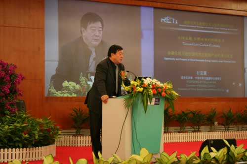 龙永图发言 石定寰发言 当今全球常规化石能源的大量使用已经造成愈演愈烈的能源危机和气候变暖问题。在目前全球金融危机及气候变化形势的推动下,整个世界范围内正经历一场经济和社会发展方式的巨大变革,迫切需要发展低碳能源技术,建立低碳经济发展模式和低碳社会消费模式,需要积极推进和提倡使用洁净的可再生能源,特别是重视可再生能源新技术开发与产业化投资相结合,以降低可再生能源的利用成本。 12月6日上午,2008深圳可再生能源技术与投资国际研讨会(RETI)在深圳市民中心B区一楼多功能厅召开,活动的主题是“引领未来的低碳经济—金融危机背景下的可再生能源产业发展对策”。此次研讨会由联合国工业发展组织、深圳市人民政府、博鳌亚洲论坛、商务部中国国际经济技术交流中心、深圳市能源集团有限公司、中国可再生能源学会主办,联合国工业发展组织深圳国际能源与环境技术促进中心承办。这是国际可再生能源领域技术和投资专家云集的开放式大型国际活动,国内外政府机构能源政策代表、可再生能源领域的知名大学和研究机构以及著名企业代表、相关投融资机构和中国新能源网等行业新闻媒体,出席了本次年度盛会。 在全球气候变化的背景下,“低碳经济”日益受到世界各国的关注。所谓低碳经济是指在发展中排放最少的温室气体,获得整个社会最大的产出。低碳经济被人们认为是继工业革命、信息革命后,第五波改变世界经济的革命浪潮,低石油耗能将成为未来生活的主流模式。在全球气候含碳浓度越来越高的情况下,“低碳技术”的推广及应用开始受到世界各国的高度关注。低碳经济是以低能耗和低污染为基础的绿色经济,具体措施包括能源效率及节约(交通、建筑和工业上);燃料使用的转变,从煤炭转为天然气;发电厂和氢工厂的碳捕捉;可再生能源(包括生物质能、风能、潮汐能、太阳能、地热能);原子裂变;森林和土壤中碳的固存等。“低碳经济”的理想形态是充分发展阳光经济、风能经济、氢能经济、生物质能经济等。 RETI 2008倡导人们关注引领未来生活的低碳经济,本届研讨会分为论坛专题报告与高峰对话两个主要部分,可再生能源领域技术和投资专家将登上讲堂进行专题报告,讲解作为具有全球新趋势的低碳经济,为促进可待续发展出谋划策。通过高峰对话共同探讨金融危机背景下的可再生能源产业的发展前景,为投资基金在新能源项目方面寻求发展机遇。 主要演讲嘉宾有:联合国工发组织技术与投资促进司司长梁丹、博鳌亚洲论坛秘书长龙永图、国务院参事及中国可再生能源学会理事长石定寰、深圳能源集团股份有限公司董事长及UNIDO-ITPC项目主任高自民、国家发改委能源研究所高级顾问及中国可再生能源规模化发展项目办公室主任周凤起、中国工程院院士、广东核电集团高级顾问郑健超、中国科学院广州分院院长陈勇、英国驻广州总领馆气候变化高级官员Tim Hanson、澳大利亚驻广州总领馆商务领事与贸易专员Bing Liu、美国VantagePoint创投基金北京分公司总裁杨磊。 深圳可再生能源技术与投资国际研讨会通过召集国际范围内可再生能源利用的顶级专家来中国深圳就“可再生能源”进行专题峰会,以介绍国外新技术为主,结合中国高新技术成果交易会的平台,通过最新技术研讨与成功案例示范引导和促进可再生能源在中国的产业化应用,共同交流研讨全球最新研究成果信息以及实践证明可行应用经验,引导可再生能源的规模化应用。(《中国新能源》杂志 江创成) 会场全景