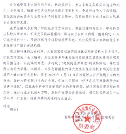 共商中国新能源在经济危机下的市场发展战略与多赢的合作模式;