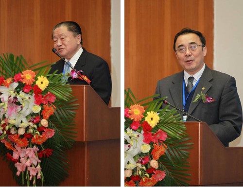 首届“中达环境法论坛”在北京清华大学举行,台达集团创办人、台达环境与教育基金会董事长郑崇华先生(左图)、清华大学谢维和副校长(右图)致辞 开幕式上,嘉宾们分别为“2011年中达环境法学者”中国政法大学王灿发教授,“2011年中达环境法青年学者奖”获得者武汉大学秦天宝教授、清华大学邓海峰副教授,以及来自两岸高校41位 “2011年中达环境法学位论文奖学金”获奖博硕士研究生代表进行了颁奖。