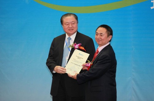 中国工程院钱易院士(左三)、台达基金会董事李念祖律师(左一)等嘉宾分别为来自两岸高校41位 “2011年中达环境法学位论文奖学金”获奖博硕士研究生代表进行了颁奖 台达集团董事长郑崇华表示,台达集团成立40年来,始终是以“环保 节能 爱地球”为经营使命。本届论坛的主题围绕在“环境法治与可持续发展”,这与台达基金会“致力推行环境保护、科技创新与教育推广,促进人类社会永续发展”的宗旨相互映照。