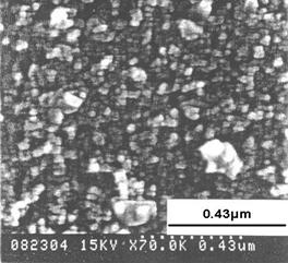 图5[6] 新的光敏化剂Ru(dcphen)2(NCS)2和Ru(dcbiq)2(NCS)2的分子结构式及其无水乙醇溶液中的吸收性能 开发对近红外,红外波段吸收的染料,也是染料研究的一个重点。图5列出了两种新的光敏化剂Ru(dcphen)2(NCS)2和Ru(dcbiq)2(NCS)2的分子结构式及其与N3的吸收性能比较。Ru(dcphen)2(NCS)2的最大吸收峰在520nm,与N3相近,据报道利用这种染料敏化的DSSC效率达6.1%~6.6%。Ru(dcbiq)2(NCS)2对大于600nm波长范围的吸收更具优势。N3染料的主要缺陷在于长波长无吸收。增大染料在近红外的吸收,同时保持短波长的光电转换效率不变,有利于提高整个太阳能电池的总效率。近年来,以Z907为代表的两亲型染料和以K19为代表的具有高吸光系数的染料敏化剂是当前多吡啶钌类染料研究的热点。[NextPage] 2.1多孔薄膜对光的利用 2.3.1纳米晶TiO2颗粒尺寸对光利用研究 氧化物半导体的光化学稳定性好,是用于DSSC光阳极的宽带隙半导体材料。自Grätzel成功将纳米晶多孔薄膜引入到DSSC中,电池性能得以大幅度提高。构成TiO2薄膜的颗粒大小在10-30nm之间,颗粒间的多孔结构极大地增加了薄膜的比表面积。TiO2薄膜的粗糙因子(roughness factor)大于1000,相当于面积为1 cm2的薄膜(以厚度为10μm为例),它实际的表面积达到1000cm2。考虑到纳米多孔TiO2具有高的粗糙因子,而且染料以单层吸附到TiO2颗粒的表面,所以,被吸附的染料数量大量增加(10-7molcm-2),从而导致染料在吸收峰的波长接近100 %的吸收光,增加了光的利用效率。 一般说来TiO2薄膜中含有TiO2大颗粒(250-300nm),它们能有效散射入射光子,太阳光在粗糙表面内多次反射,进一步提高光吸收效率[6]。孔隙率的多少直接影响了薄膜的性能,一般来说,孔隙率控制在60-70%间是比较合适的。图6是典型的TiO2薄膜的扫描电镜图片,其中包含了大小不等的颗粒,薄膜形成了多孔结构。