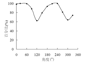 图11 入射角度对短路电流的影响(测试时间:2005年9月23日正午) 将立体太阳电池朝南与水平面呈不同角度摆放检测到的短路电流如图11所示。 由图中可以看出电池短路电流对不同角度的摆放不敏感,但在120º和300º角时短路电流值最低,这主要与螺旋状光阳极的结构有关。广州9月23日正午时太阳的高度角为66.73º,立体吸光电池光阳极的圆柱面在120º和300º角时与太阳的直接辐射光接近平行,此时对于直射来的太阳光利用较少。立体吸光电池与平面结构的明显区别是其在180º角以后仍然可以工作,而平面电池由于单面吸光在这个角度范围内无法利用阳光工作。 1.结论 新型结构染料敏化太阳电池在光的利用方面相比传统三明治结构染料敏化太阳电池具有独特的优势。通过设计一些新型的染料敏化太阳电池,可以为今后染料敏化太阳电池提高效率提供一些新的思路。 本论文得到国家自然科学基金(批准号:50702079 ) 资助。 参考文献: 1、US Patent 5923457 - Electro-optic device including a low sheet resistance, high transmission transparent electrode April 2008 Vol. 24, No. 04 Display Week Preview / Honors and Awards Issue 2、http://www.solaronix.ch/services/tcocoating/tco_spectra.gif 3、Molecular and electronic structures of black dye; an efficient sensitizing dye for nanocrystalline TiO2 solar cells, Journal of Molecular Structure,2003,658:25-32. 4、Engineering of efficient panchromatic sensitisers for nanocrystalline TiO2 based solar cells. J.Am.Chem. Soc,2001,123:1613–1624. 5、Dye-sensitized solar cells: improvement of spectral response by tandem structure.Journal of Photochemistry and Photobiology A:Chemistry,2004,164:33-39. 6、Handbook of Photovoltaic Science and Engineering. Edited by A. Luque and Hegedus. 2003 John Wiley & Sons, Ltd 7、Low cost Photovoltaic modules based on dye sensitized nanocrystalline titanium dioxide and carbon powder.Solar Energy Materials and Solar Cells,1996,44:99-117. 8、A swift dye uptake procedure for dye sensitized solar cells.CHEM.COMMUN,2003,12:1456-1457. 9、Computer simulations of light scattering and absorption in dye-sensitized solar cells.Solar Energy Materials and Solar Cells,1998,54:265-275. 10、Conversion of Light to Electricity by cis-X2bis (2,2'-bipyridyl-4,4'-dicarboxylate) ruthenium(II) Charge-Transfer Sensitizers (X=Cl, Br, I, CN, and SCN) on Nanocrystalline TiO2 Electrodes. J Am Chem Soc,1993,115(14):6382-6390. 11、Diffusion in the electrolyte and charge-transfer reaction at the platinum electrode in dye-sensitized solar cells.Electrochimica Acta,2001,46:3457-3466. 12、Performances characteristics of dye-sensitized solar cells based on counter electrodes with Pt films of different thickness. Journal of Photochemistry and Photobiology A:Chemistry,2004,164: 179–182. 13、一种提高染料敏化太阳电池光吸收的结构的初步研究,功能材料2006,37(10):1584-1586 14、用背反射提高染料敏化太阳电池光吸收的研究,中山大学学报, 2006,45(2),25-28 15、一种新的二次利用光的染料敏化太阳电池改进结构,科学通报,2006, 51(2), 230-234 16、A new improved structure of dye-sensitized solar cells with reflection film, Chinese Science Bulletin,2006, 51(3), 369-373 17、一种螺旋丝状集成的立体吸光太阳电池,中国科学E辑, 2007,37(3):1-10 18、Study on the new structure of dye-sensitized solar cells for receiving sunlight from 3-dimensional space, ISES Solar World Congress 2007, 2007,1357-1360 19、A novel solar cell fabricated with spiral photo-electrode for capturing sunlight 3-dimensionally,Science in China Series E, 2006,4 63-673 --摘自《中国新能源》杂志1、2月合刊